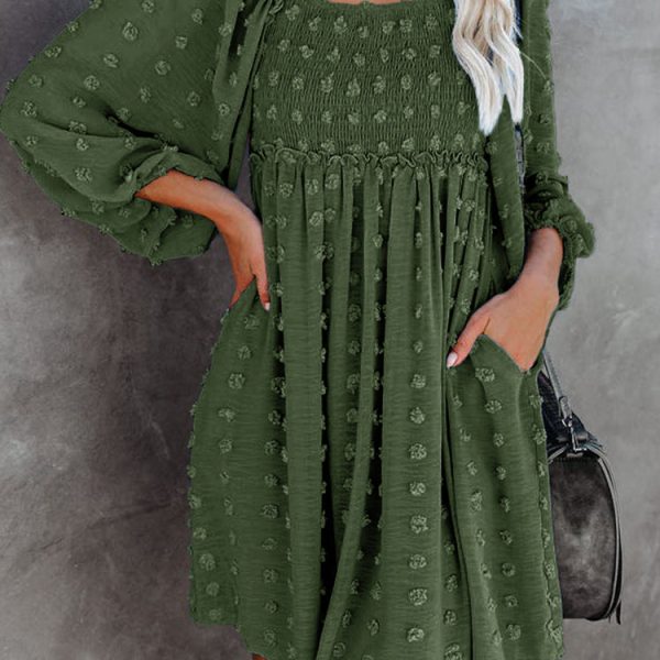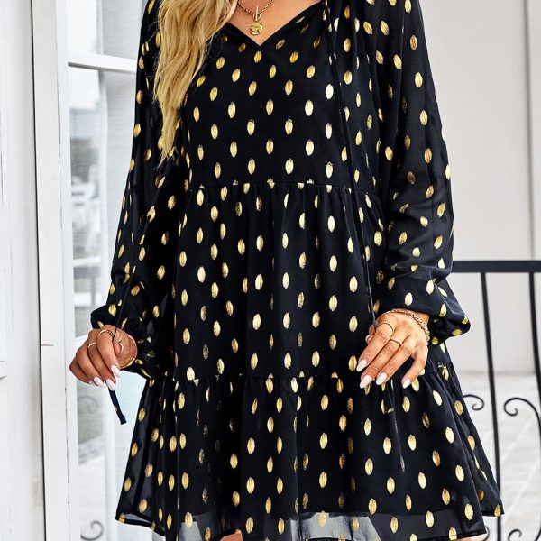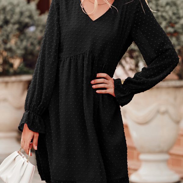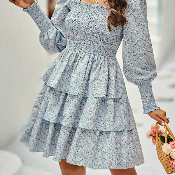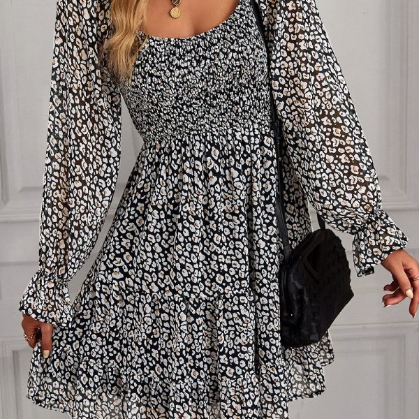 Smock V Neck Floral Print Ruffle Long Puff Sleeve Mini Boho Dress