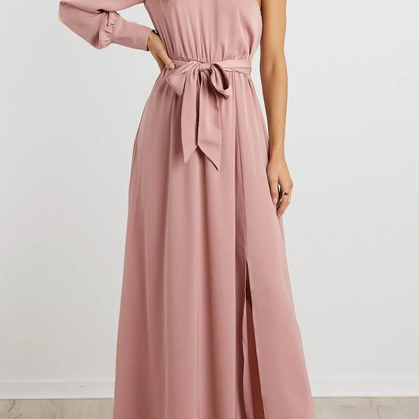 One Shoulder Ruched Bodycon Cocktail Maxi Dress