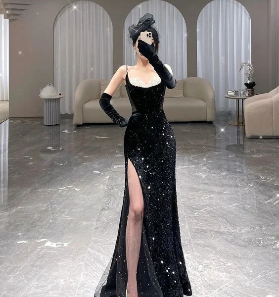 Mermaid Long Prom Dress New Arrival Sexy Black Slit Evening Dress