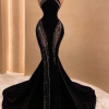 Black Halter Corset Mermaid Prom Dress Sexy Evening Dress