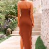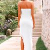 Strapless Tube Asymmetrical Ruffle Maxi Bodycon Dress