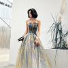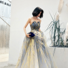 Stylish Tulle Sequins Long Prom Dress, A-Line Strapless Evening Party Dress quantity