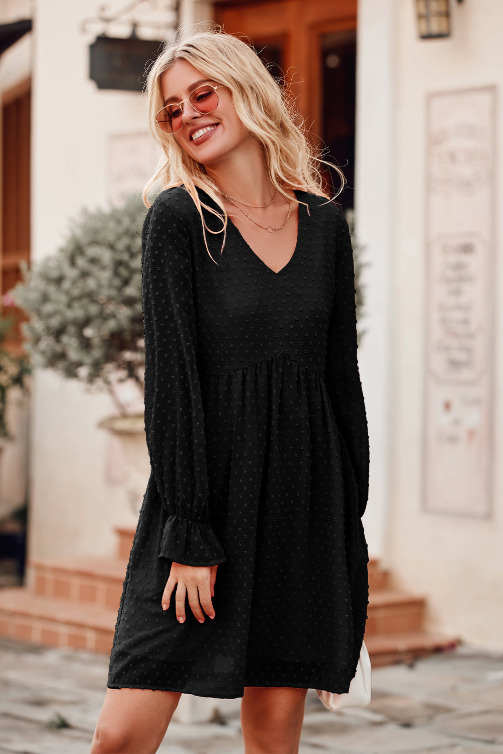 Swiss Dot Loose Fit Babydoll Mini Dress