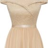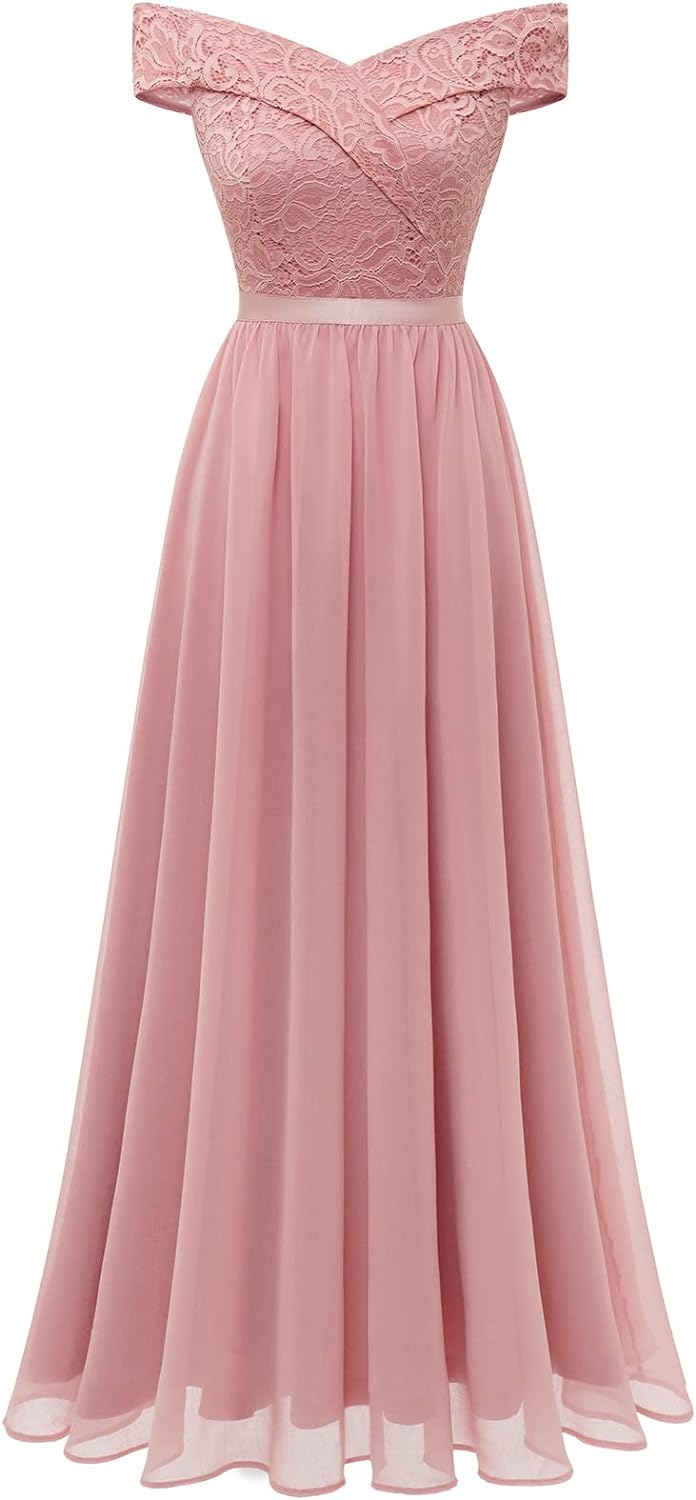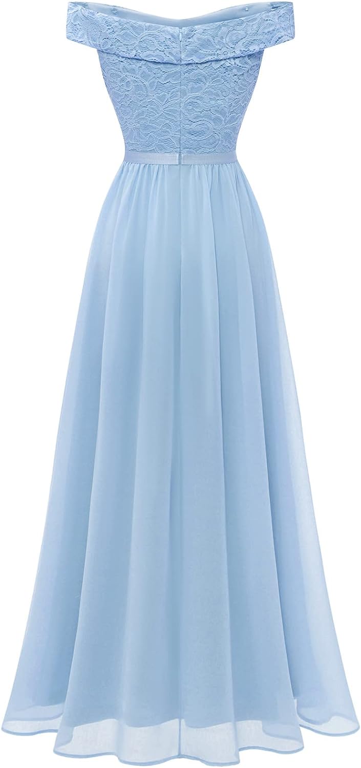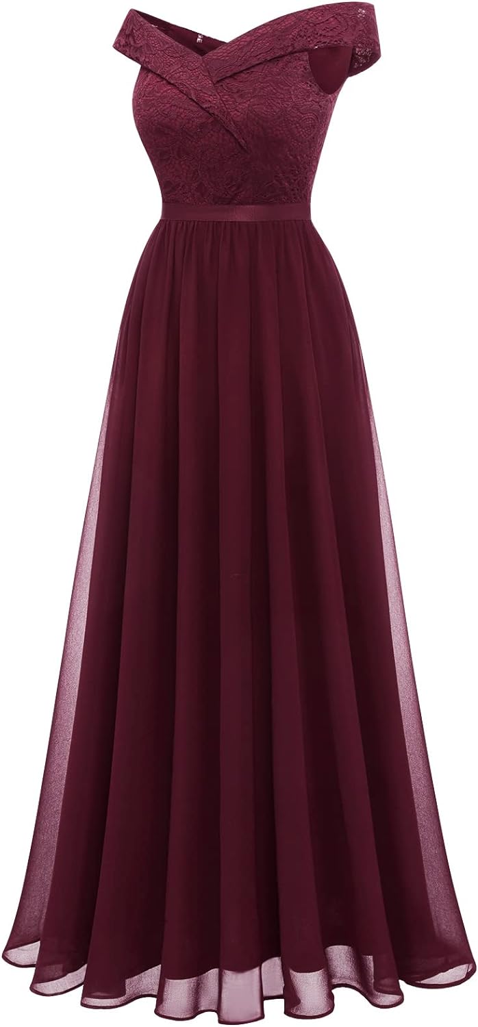 Women’s Lace Bridesmaid Dress A-Line Off Shoulder Floral Lace Chiffon Prom Dresses